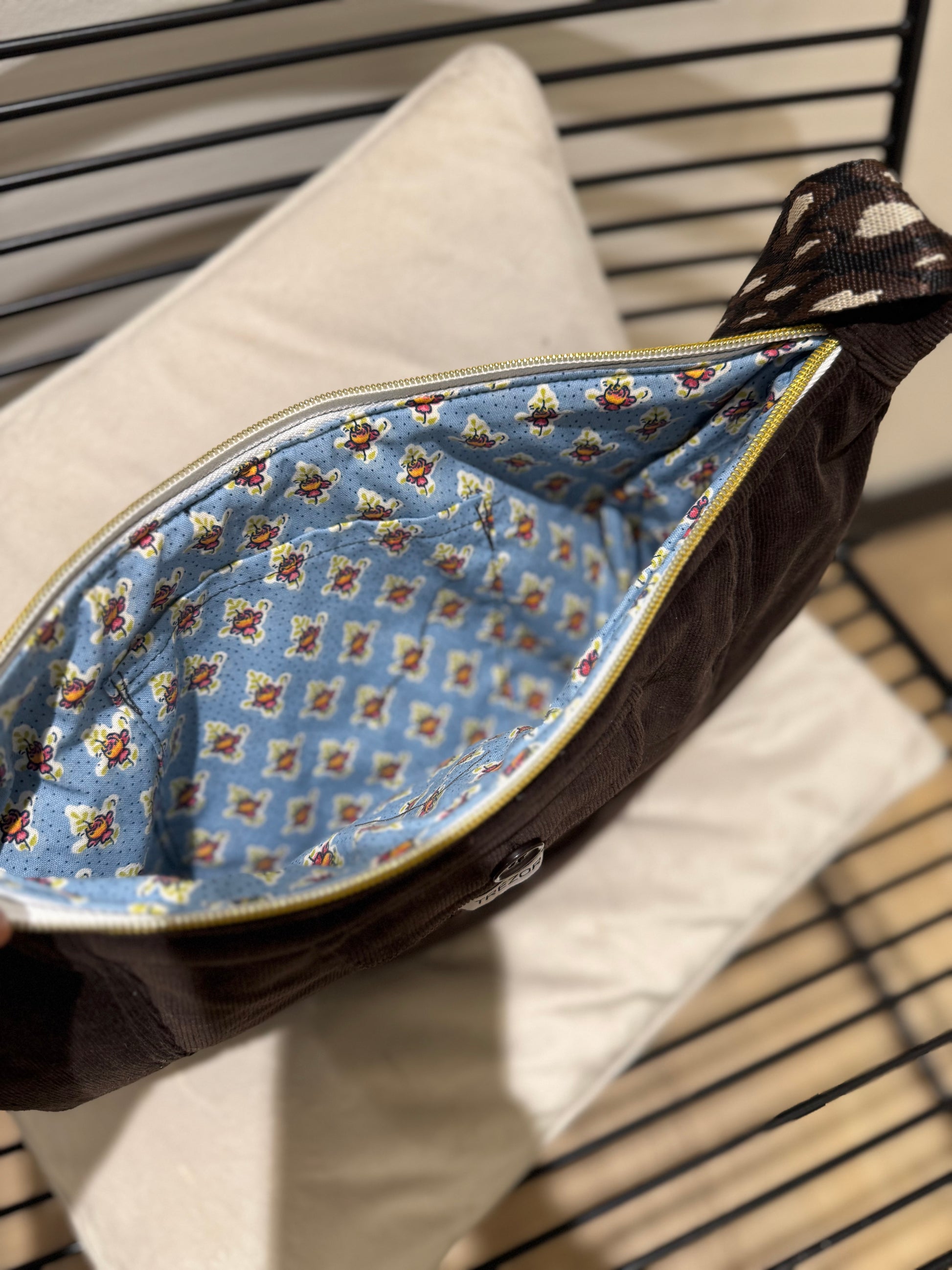 Sac banane demi-lune upcyclé marron velours